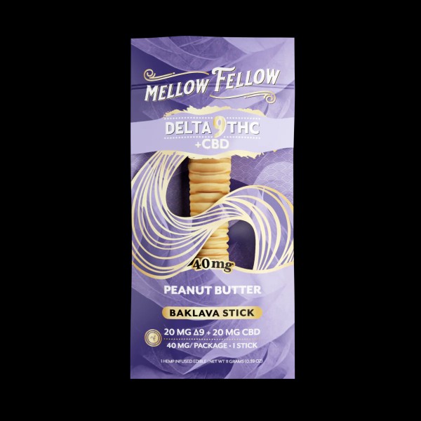 MELLOW FELLOW BAKLAVA STICKS 1pc EDIBLES 40mg DELTA-9 + CBD - PEANUT BUTTER 40ct