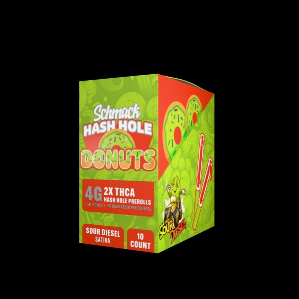 SCHMACK DONUTS 4G THCA HASH HOLES PRE ROLLS 10CT - SOUR DIESEL (SATIVA)